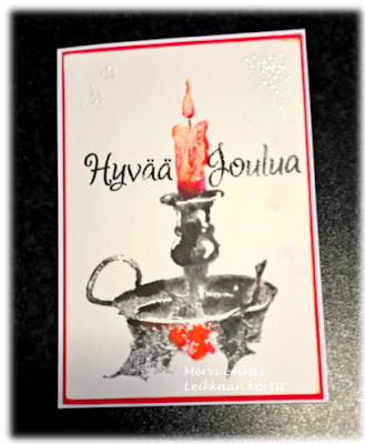 Hei, pikkujouluaikaa vietetään, joten näissä merkeissä pyörii korttien teemakin. Samalla muistutan, että vielä ehdit osallistua Penny Black and more marraskuun haasteeseen: Kaikki leimattu ja jouluinen käy!